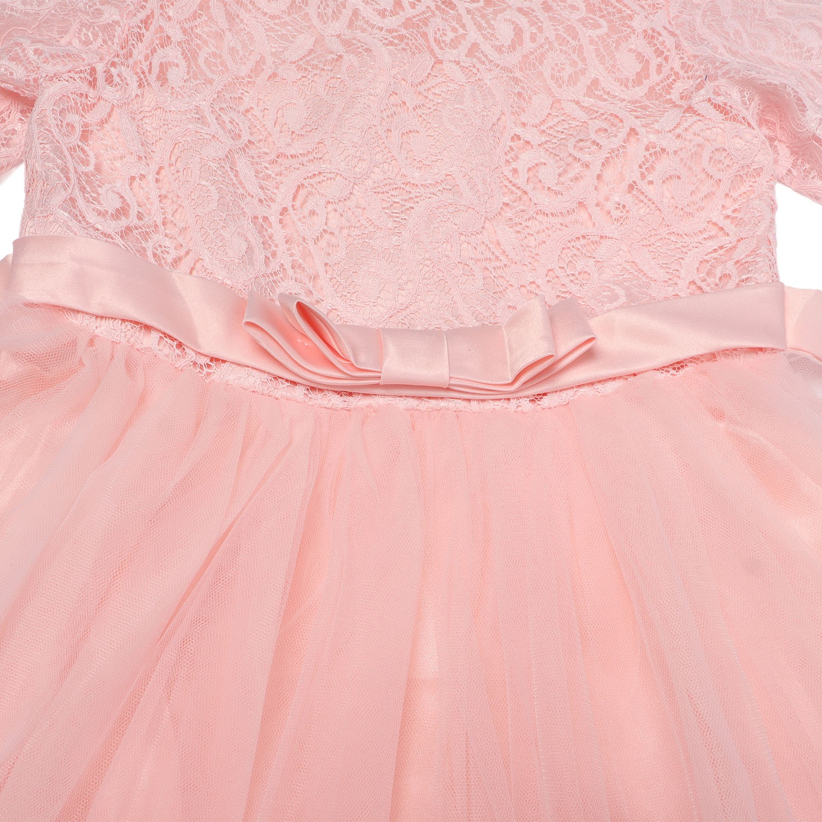 Pink Girl Performance Dress Lace Long Sleeves Princess Pageant Bow Tie Pure SG