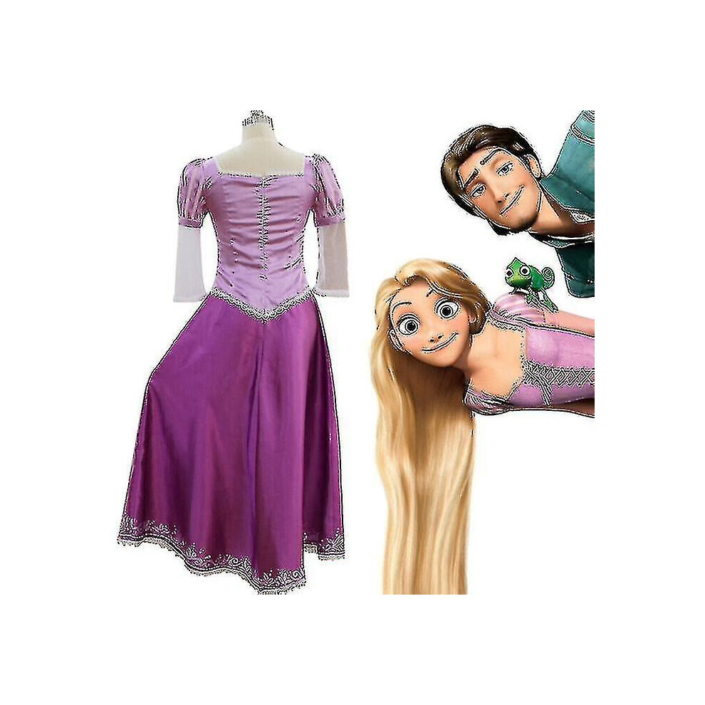 (Adult-S) Fairytale Adult Princess Tangled Rapunzel Dress Halloween Fancy Cosplay Costume