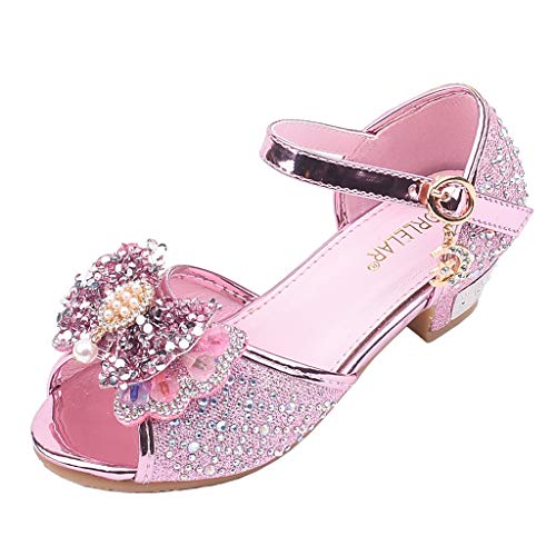 ZOUPREME Girls Glitter Princess Elsashoes Dance Trainers, Mary Jane Low Heel Shining Performance Dress Shoes, Elegant Sandals (C-Pink,9)