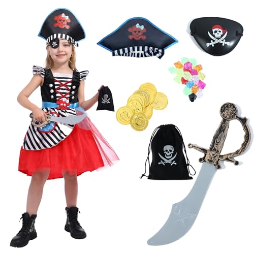 Sincere Party Girls Pirate Costume Pirate Bucaneer Princess Deluxe Dress With Sword,Pirate Pouch,Eye-patch and Hat 9-10years
