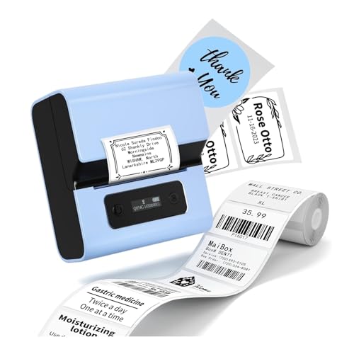 ZGJIAJU Barcode Label Printer 3 Inch Label Maker Bluetooth Thermal Printer For Business Home Use Compatible With Phone And PC Clear Printing(Blue)