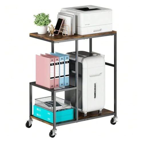 CAIYUN Printer Stand- Large 3 Tier Printer Table with Wheels-Under Desk Industrial Printer Storage Cart- Rolling Printer Cart with Storage Shelf for Printer Scanner Fax Home Office Use- Rustic Brown
