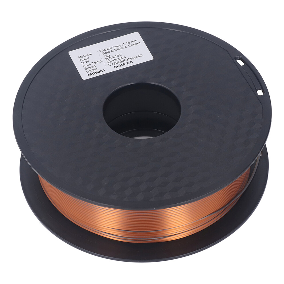 Silk Effect PLA Filament3D Printer Wire, Glossy Copper Silver Gold Tri Color Shiny Surface No Bubbles Strong Toughness1.75mm Environmentally