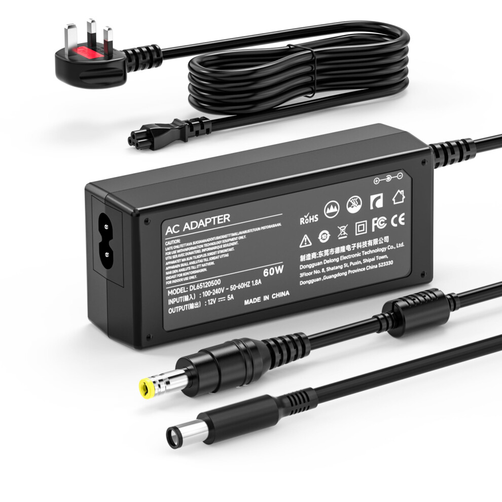 12V 5A 60W Power Supply for LED Strip Lights, Router, CCTV Camera, ADSL Cats, Switch, Security camera, Audio/Video, Printers, Monitors, UK plug, Wall
