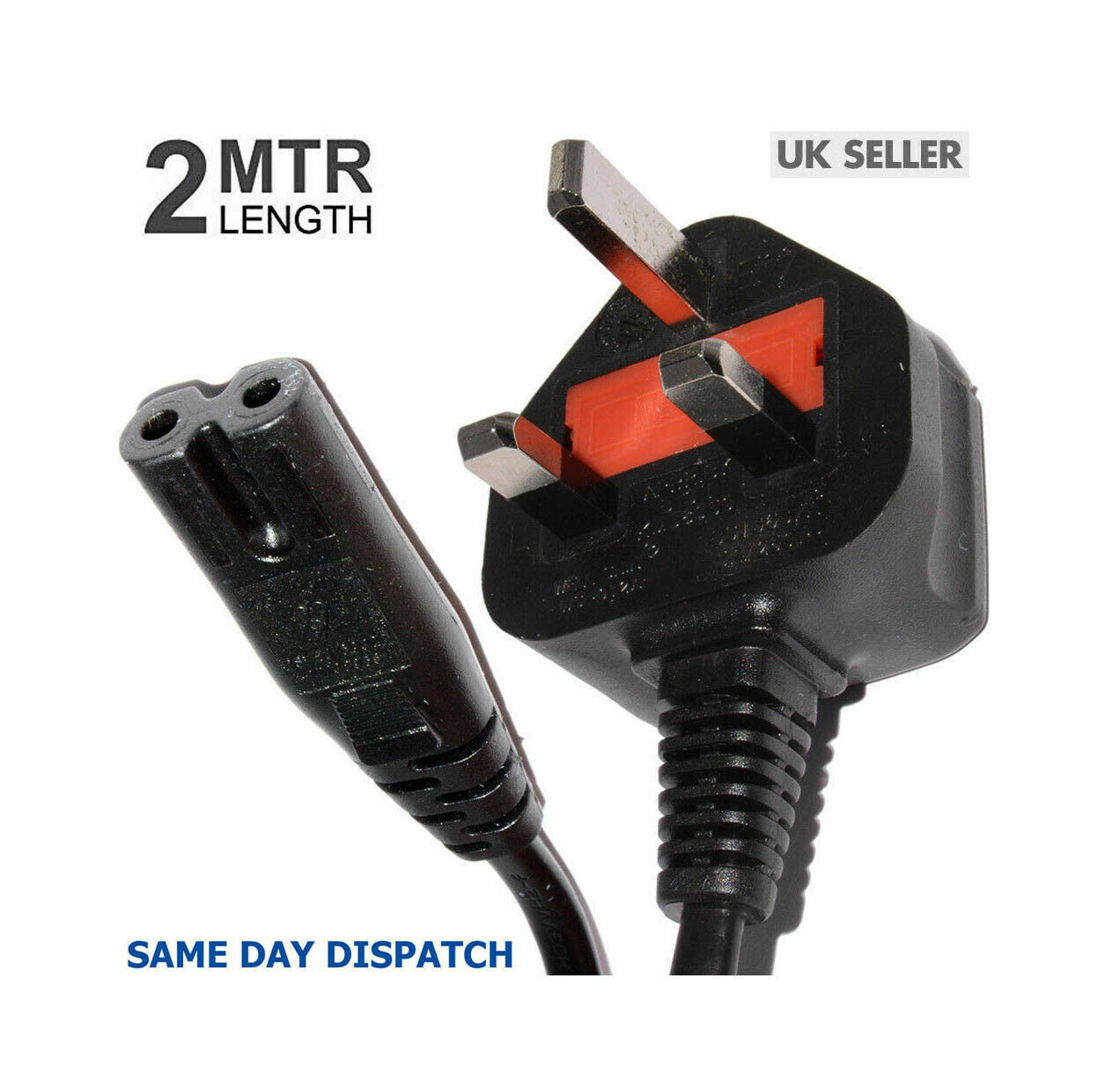2 Meter Figure of 8 Mains Cable / Power UK Plug Cord IEC C7 Fig For Printers