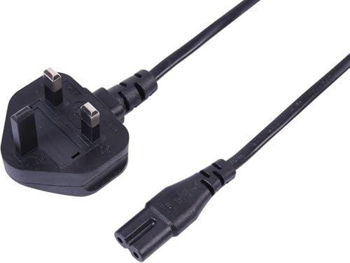 UK Plug to Right Angled Figure 8 Power Cable, Black for TV, Printers, PS4 & PS3