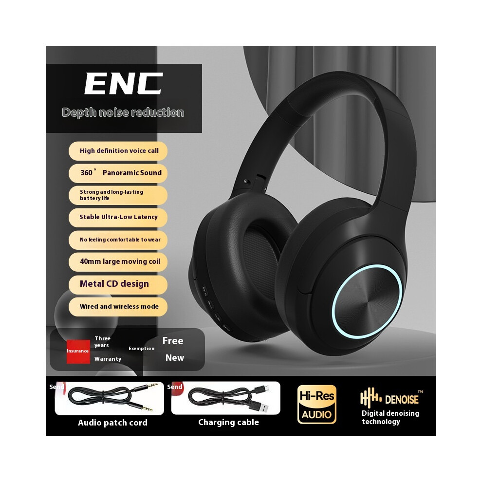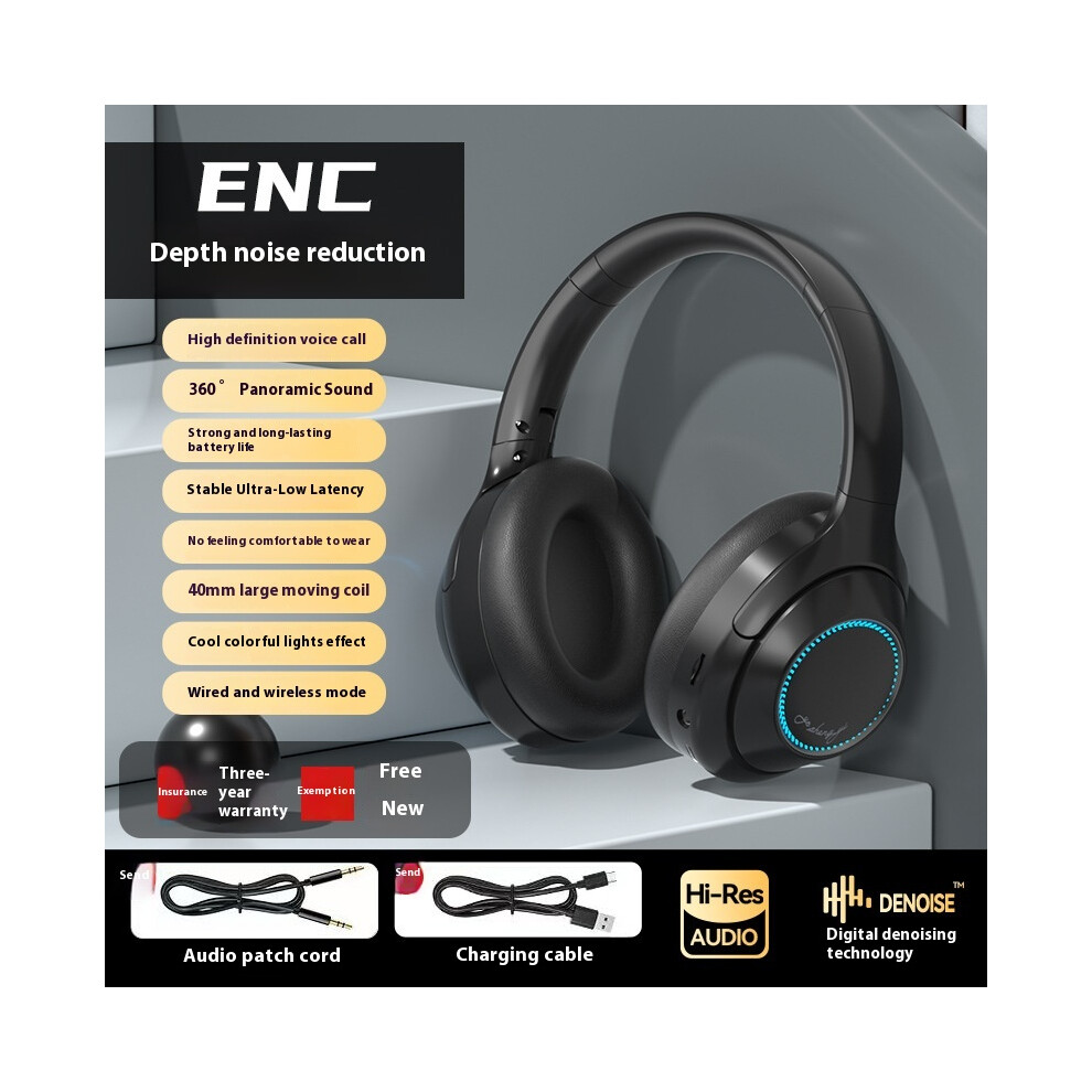 (Black) 2025 new private model full-inclusive ear luminous Bluetooth headset rotating large ear cups for extra long battery life
