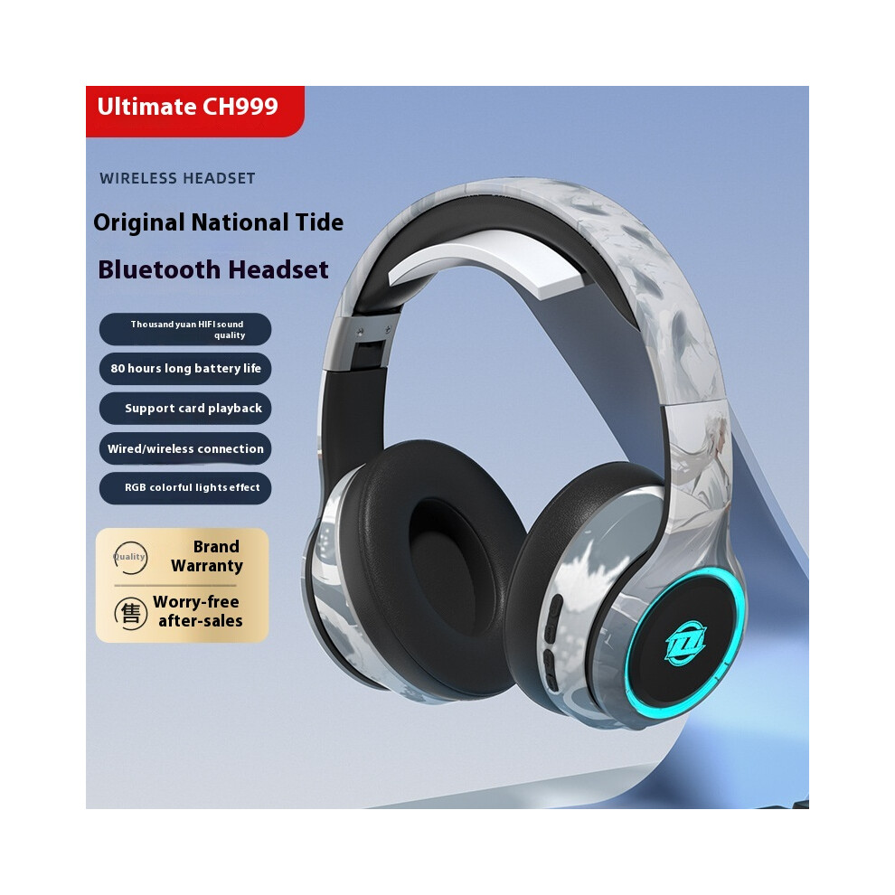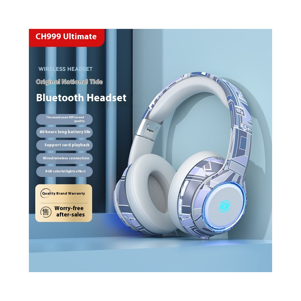 (Fantastic white and blue) 2025 new private model national trendy headset Bluetooth headset high-value colorful lighting long battery life high bass s