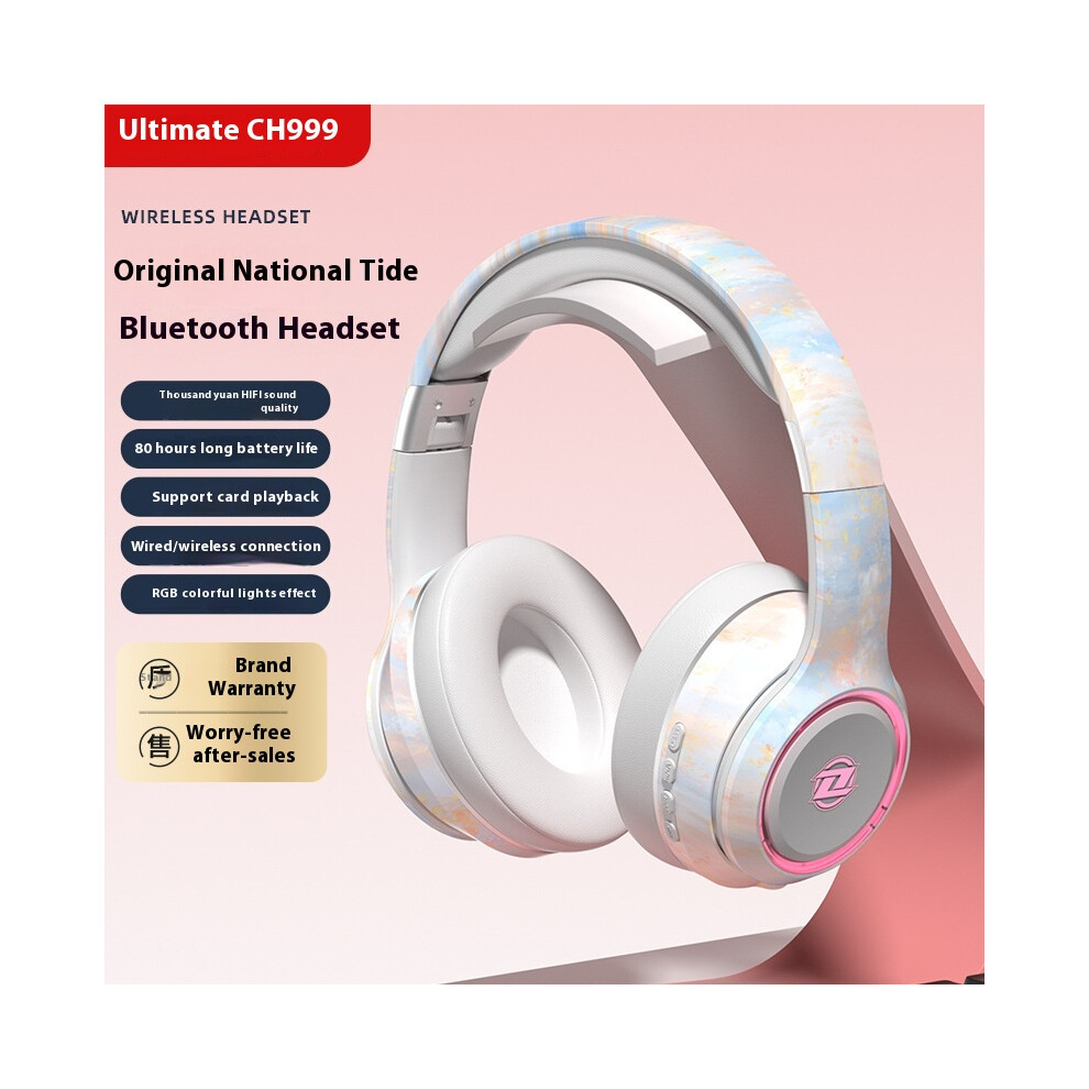 (Fantastic colorful cloud powder) 2025 new private model national trendy headset Bluetooth headset high-value colorful lighting long battery life high