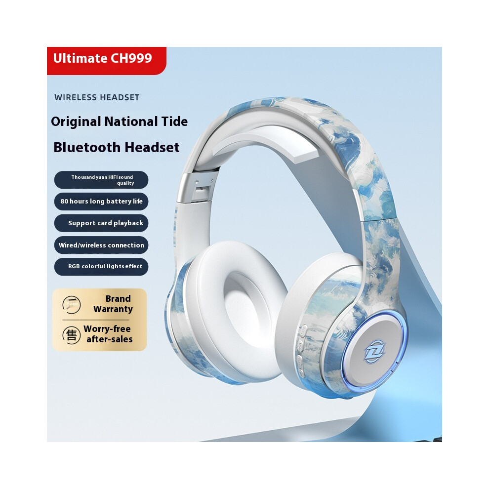 (Fantastic oil painting blue) 2025 new private model national trendy headset Bluetooth headset high-value colorful lighting long battery life high bas