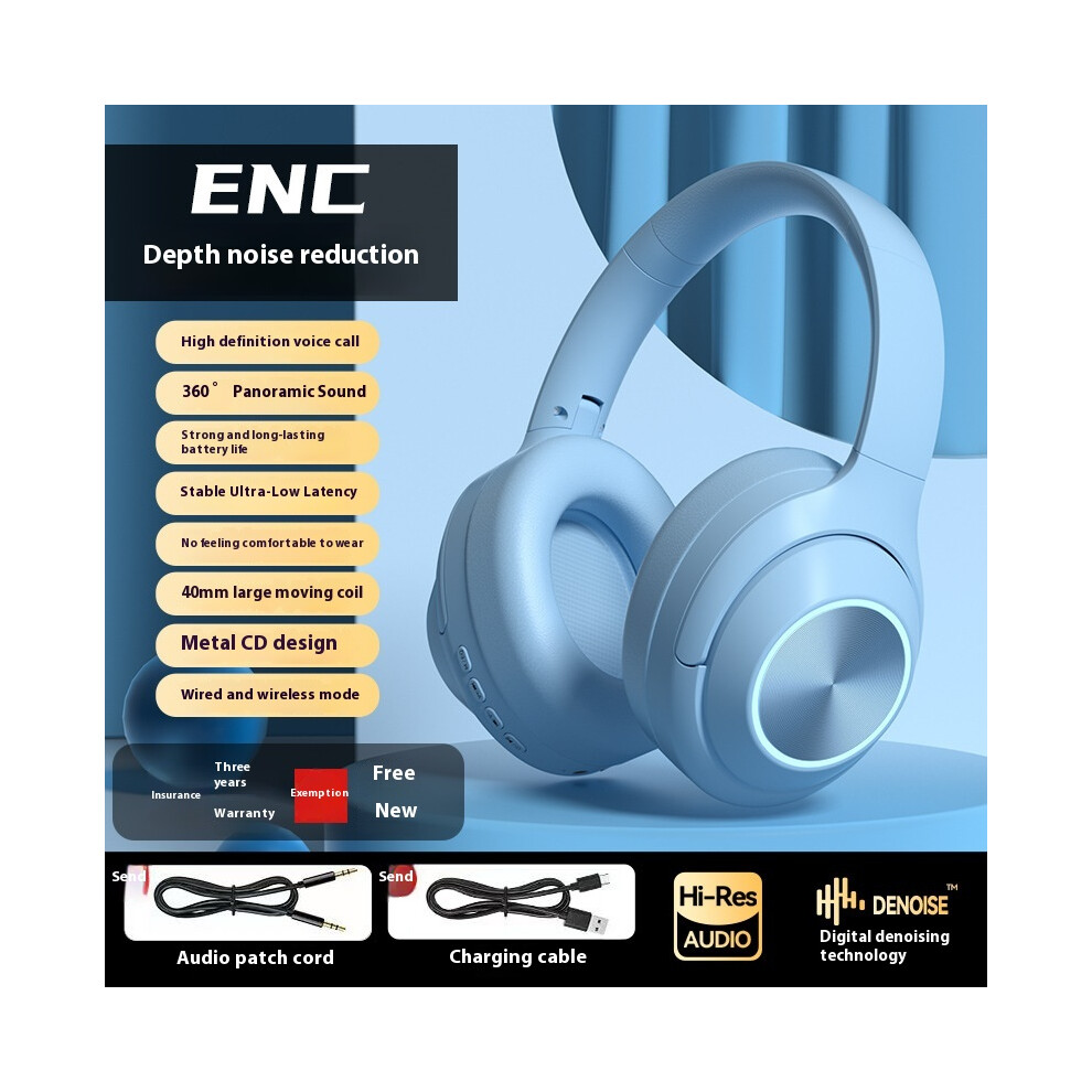 (Blue) 2025 new private model headset wireless Bluetooth headset noise reduction with headset high and lows long battery life