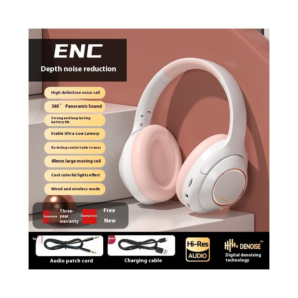 (Pink) 2025 new private model headset wireless Bluetooth headset noise reduction with headset high and lows long battery life