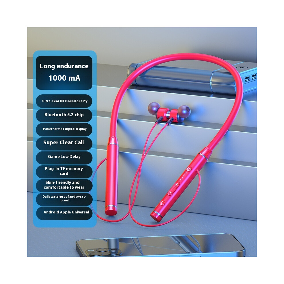 (Red) 2025 new private model wireless Bluetooth headphones powerful neck sports running game super battery life high and low sound