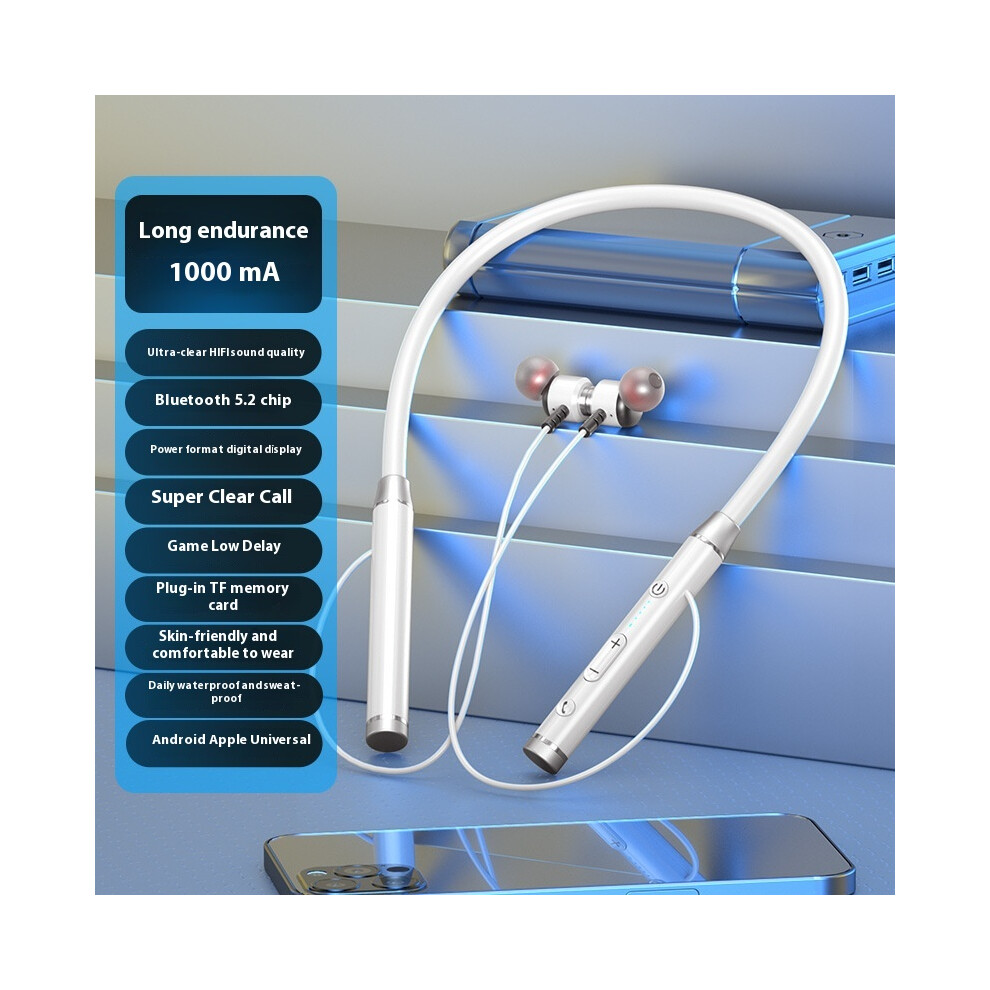 (White) 2025 new private model wireless Bluetooth headphones powerful neck sports running game super battery life high and low sound