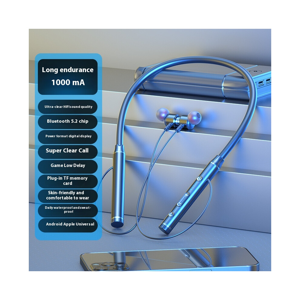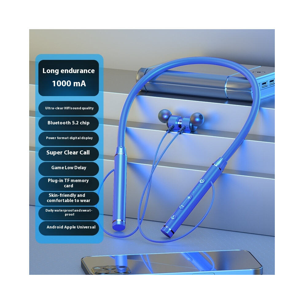 (Blue) 2025 new private model wireless Bluetooth headphones powerful neck sports running game super battery life high and low sound