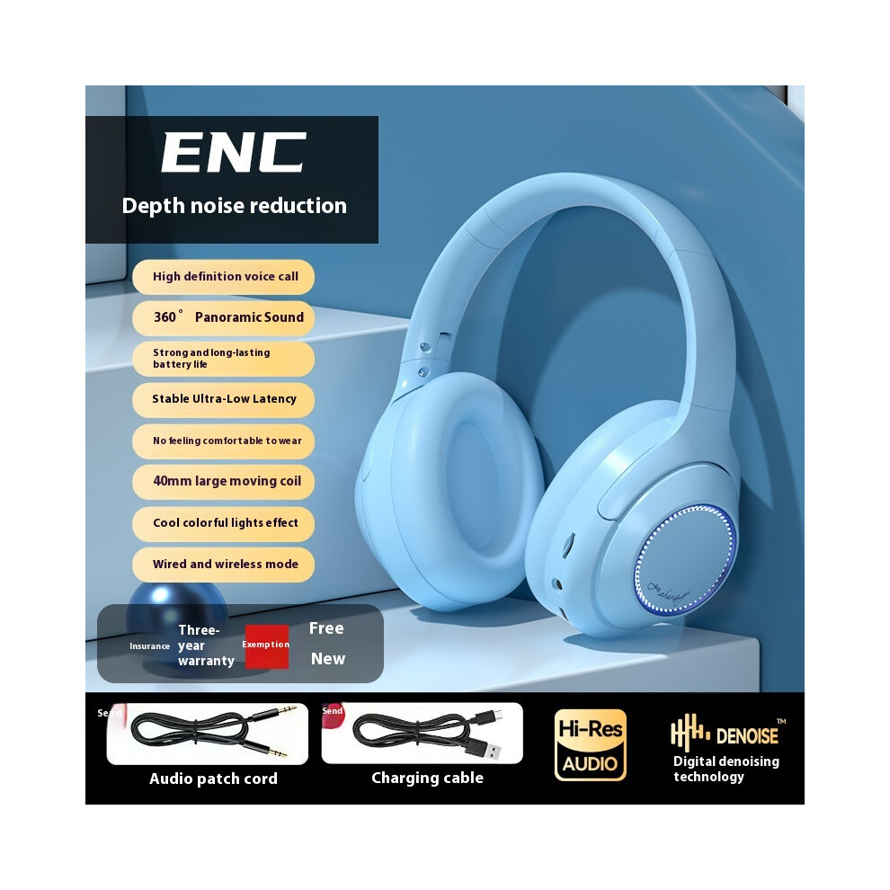 (Blue) 2025 new private model full-inclusive ear luminous Bluetooth headset rotating large ear cups for extra long battery life