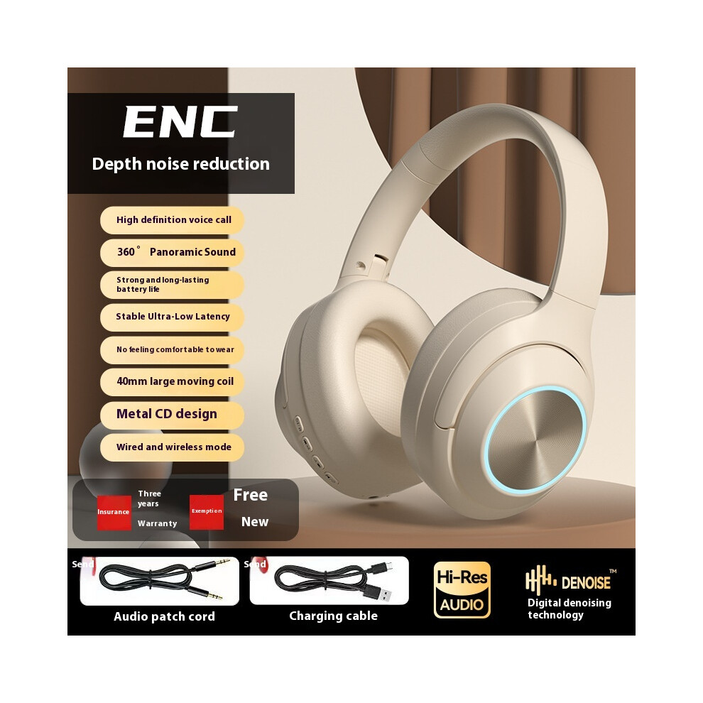 (Off white) 2025 new private model headset wireless Bluetooth headset noise reduction with headset high and lows long battery life