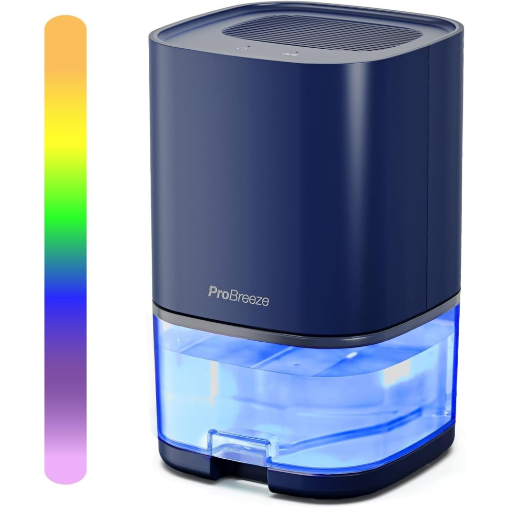Pro Breeze 1000ml Dehumidifier for Bathroom - Quiet, Portable & Small Air Dehumidifier for Bedroom Mould, Damp & Moisture - with 4-Hour Timer, Auto Shut-Off & LED Changing Lights - Blue