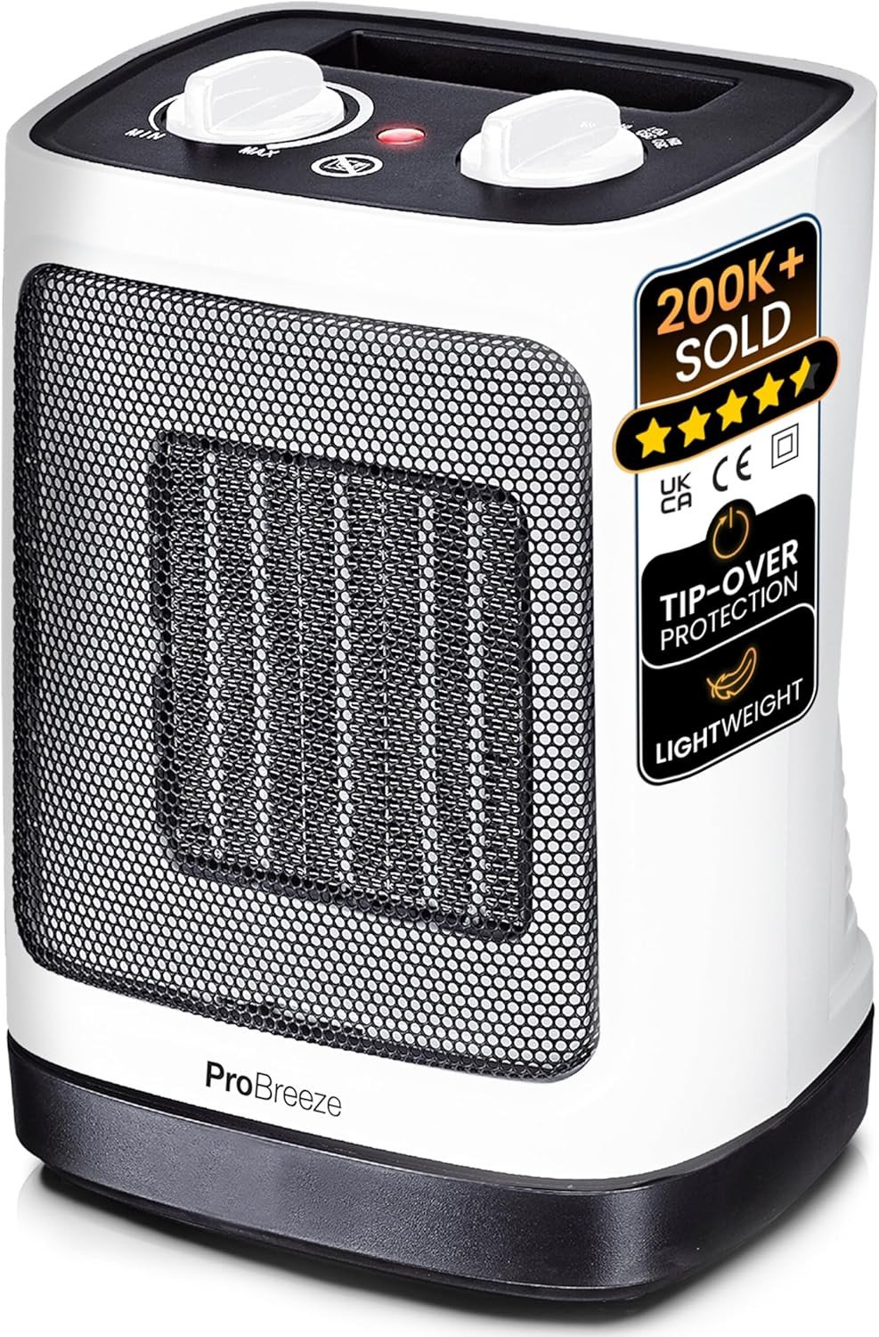 Pro Breeze 2000W Ceramic Heater Adjustable Thermostat Portable & Safe UK