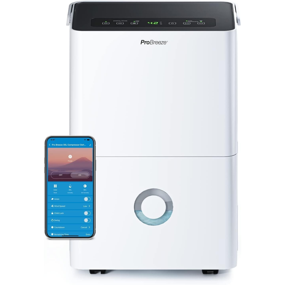 Pro Breeze® 30L/Day Dehumidifier - Smart Compressor Dehumidifier with App, Wi-Fi, Continuous Drainage, 4L Water Tank, 24h Timer & Child Lock- Mould Remover & Moisture Absorber for Home & Bathroom