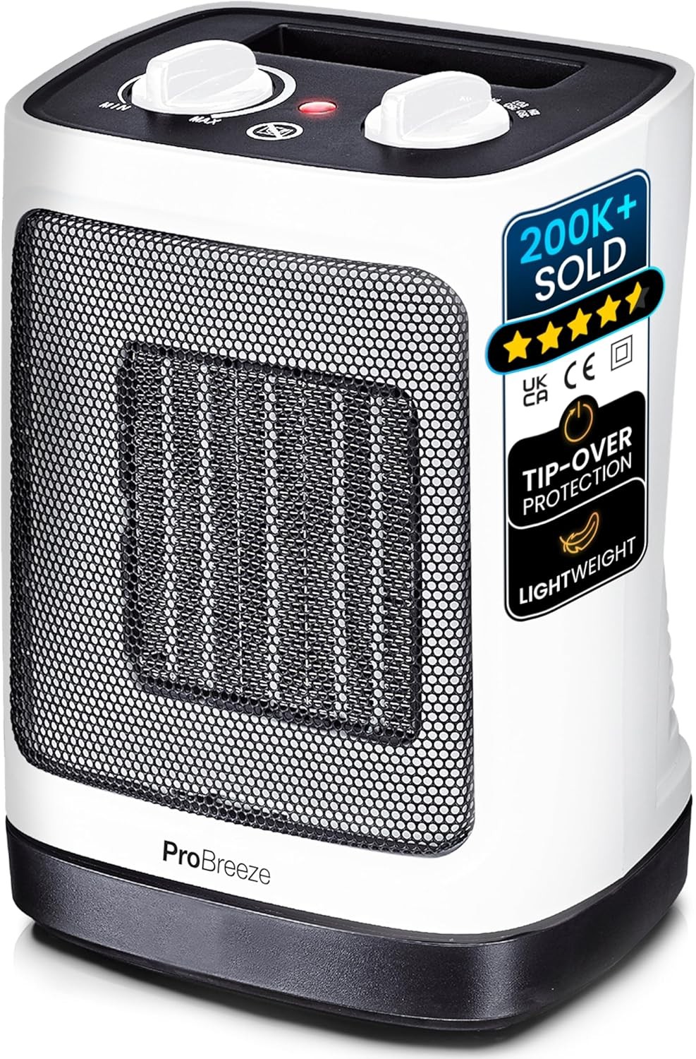 Pro Breeze 2000W Mini Ceramic Fan Heater - 3 Heat Settings & Only White
