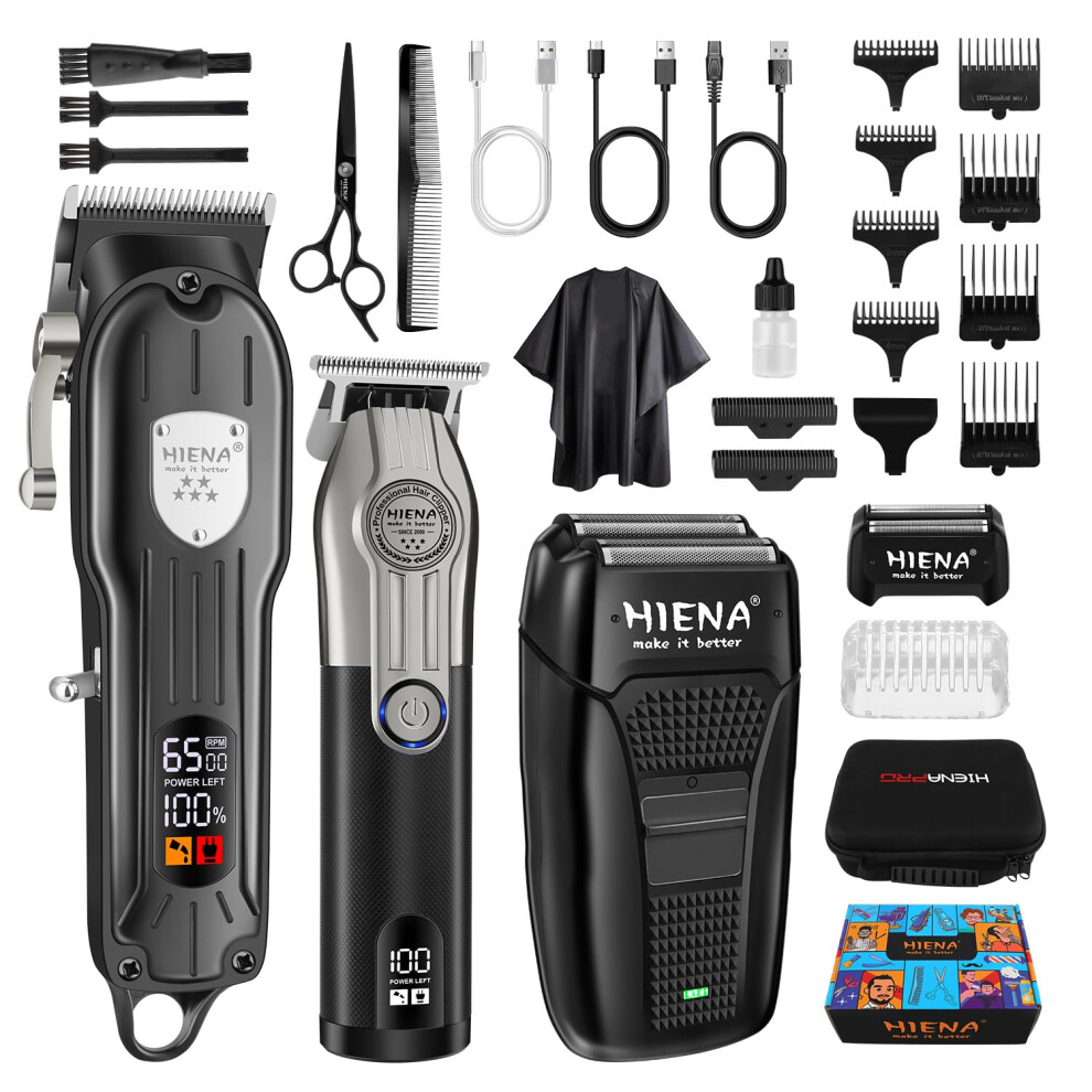 HIENA PRO Professional Hair Clippers Men Cordless Electric Beard Trimmer and Foil Shaver Set Home Hair Cutting Kit Type-C Rechargeable for Barber Clippers with LED Display