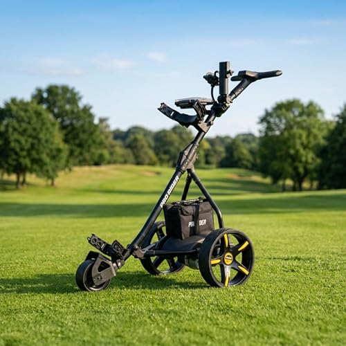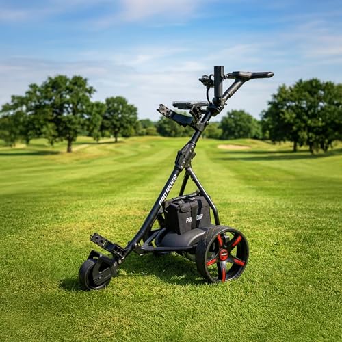 Pro Rider Electric Golf Trolley | 9 Speed Settings, Auto Distance Function, Powerful 200W Motor | Rugged Extra Grip Wheels | Easy to Assemble Complete 18 and 36 Hole Models | Free Accessory Bundle