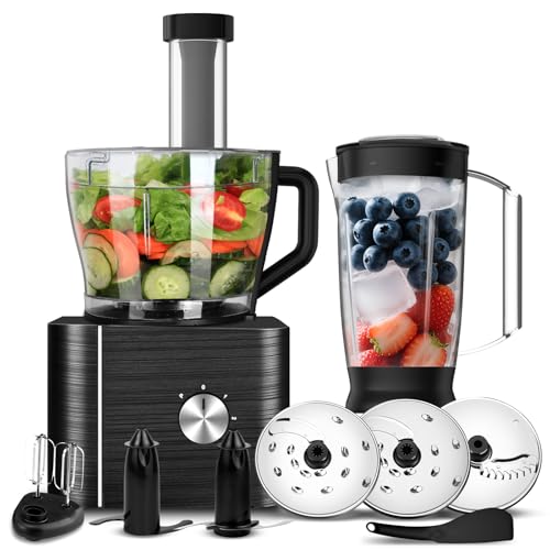 TopStrong Food Processor, Food Processor and Blender Multifunctional for Chopping Blending Kneading Whisking Juicing, 1100W, 3 Speeds and Pulse Function, 3.2 L Bowl and 1.5L Jug Blender, Black