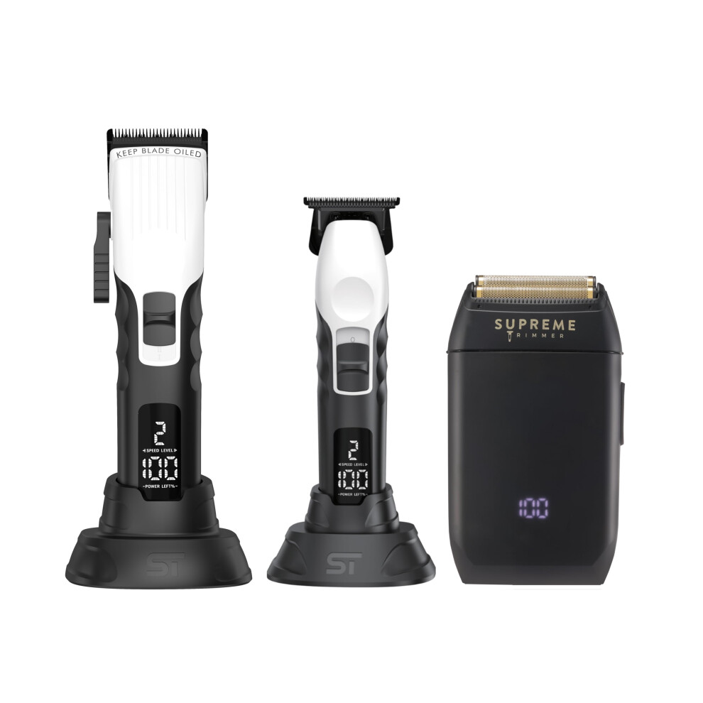 Supreme Trimmer 3-in-1 Barber Bundle | 2Spee Clipper, 2Spee Trimmer & Crunch Foil Shaver | Professional Beard Trimmer Mens Hair Clipper Kit | White