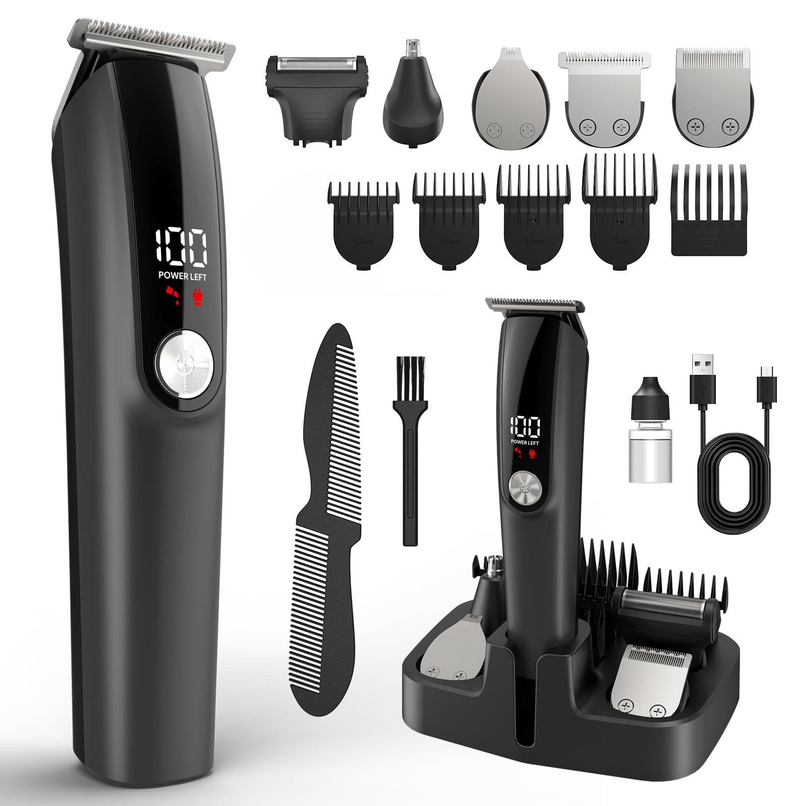 Beard Trimmer Hair Clippers Men, Professional T-Blade Beard Trimmer, Cordless USB Rechargeable Detailer with LCD Screen, Grooming Kit 7 in 1 for Barbers and Home, Gifts for Men Haircut