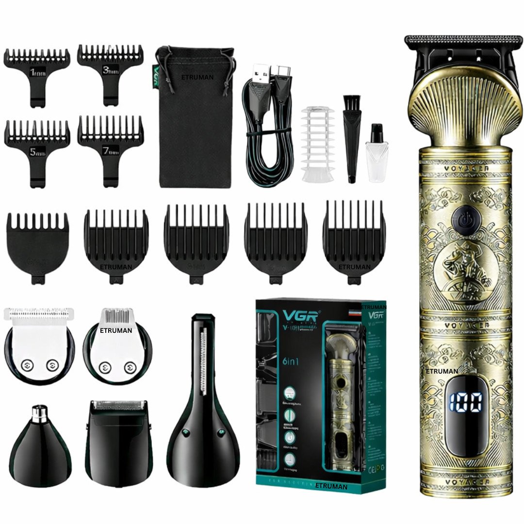 VGR 644 Hair Clippers for Men Professional, Cordless Beard Trimmer & Electric Razor Shavers, Rechargeable 3 Piece Barber Hair Cutting Kit LED Display