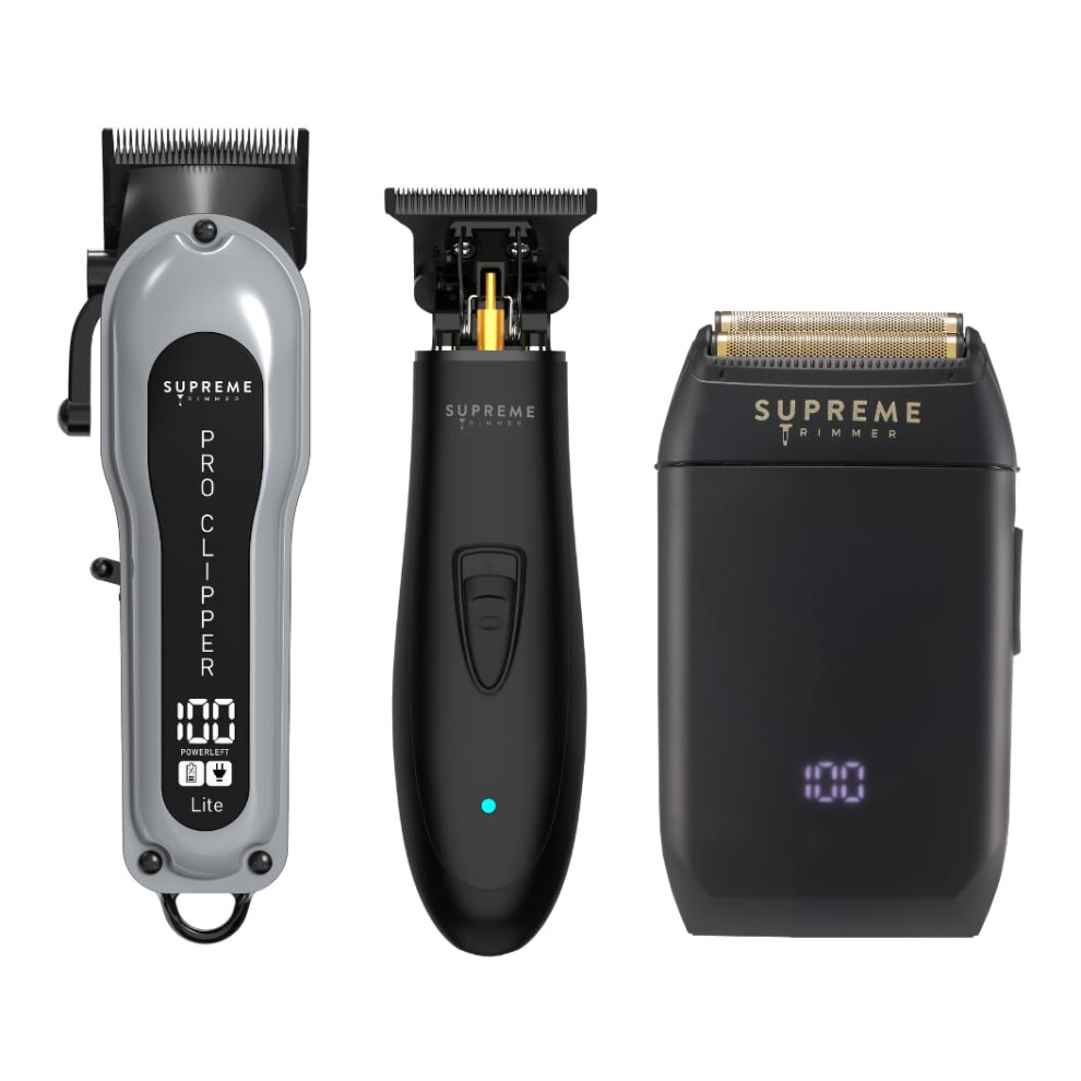 Supreme Trimmer 3-in-1 Barber Bundle | Pro Clipper Lite, DLC T-Shaper Trimmer & Crunch Foil Shaver | Professional Beard Trimmer Mens Hair Clipper Kit