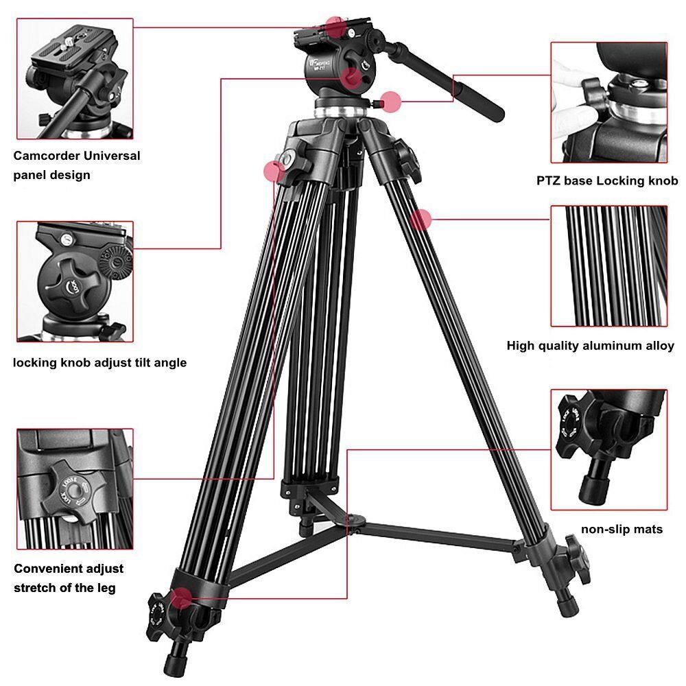 Weifeng Professional 1.8m Fluid Video Head Heavy Duty Tripod for DSLR Camcorder