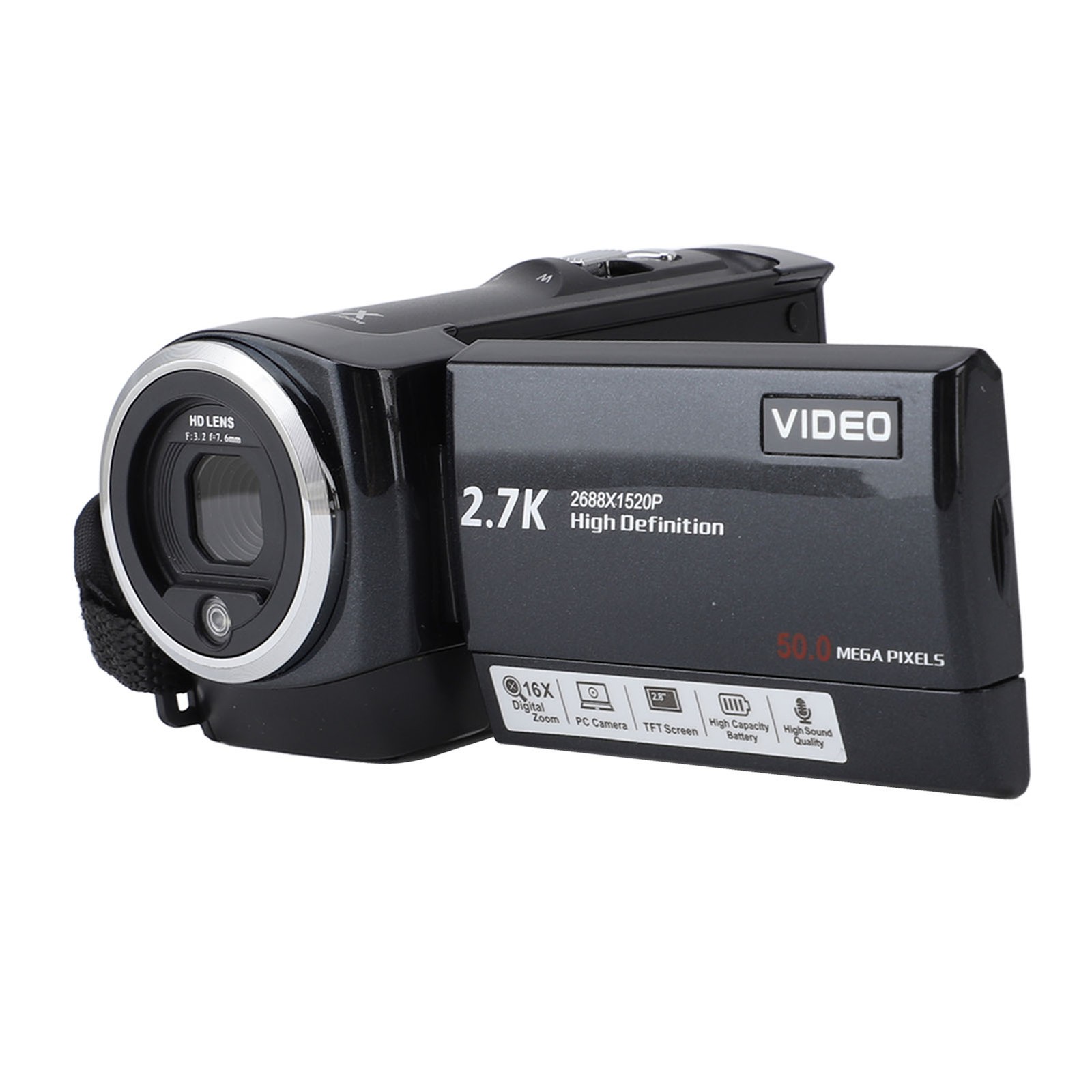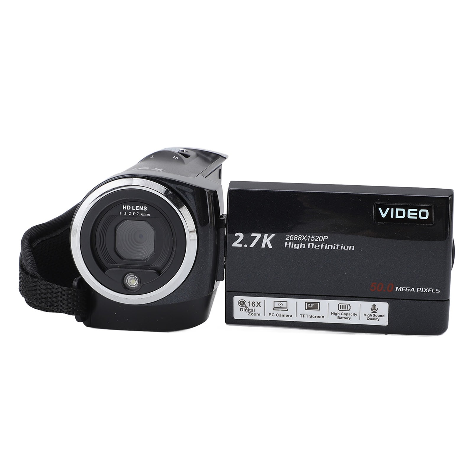 Professional 2.7K Camcorder 50MP w/ 2.8'' Screen & 16x Zoom
