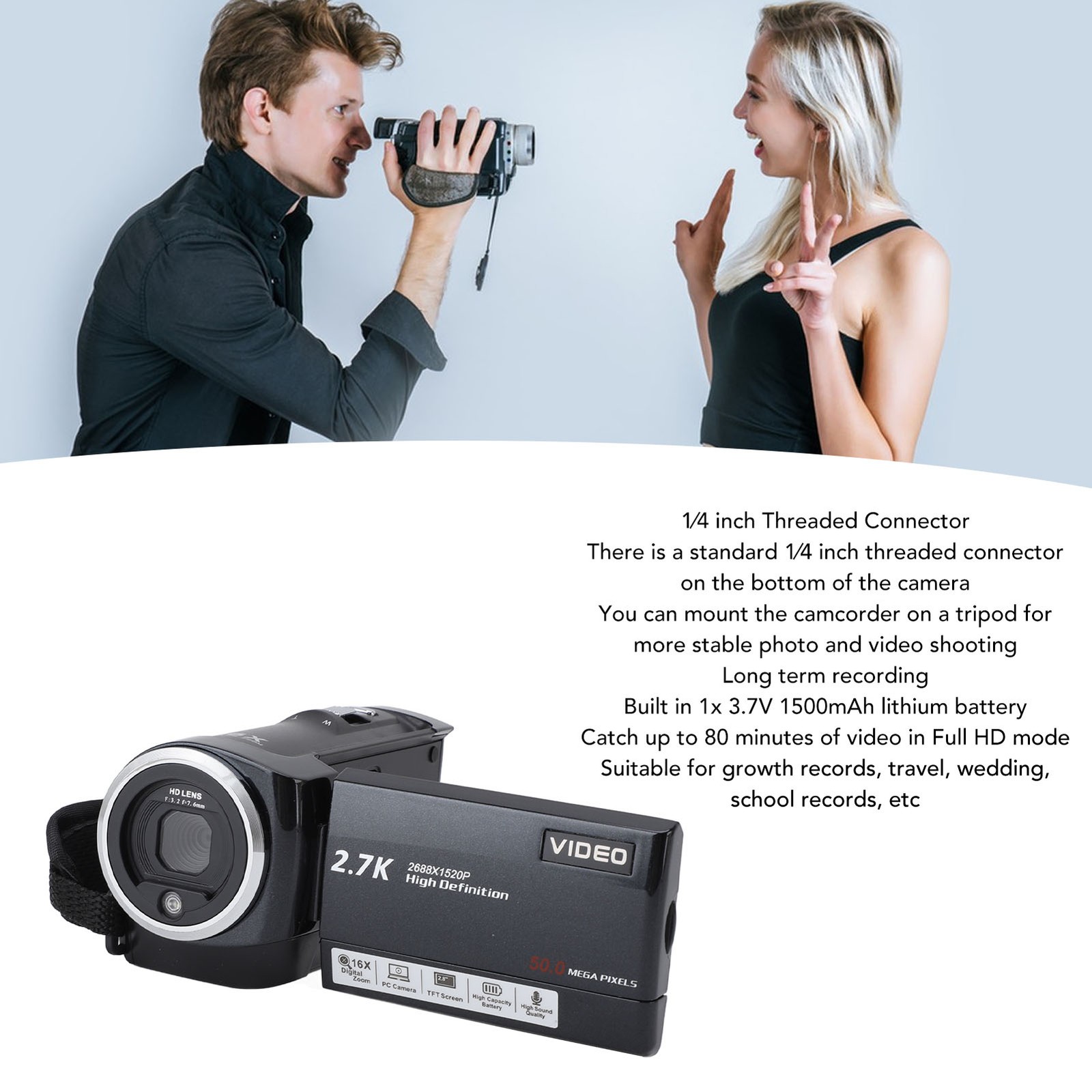 2.7K Camcorder Professional 2.8in Screen HD 50MP 16x Digital Zoom Vlogging Camer