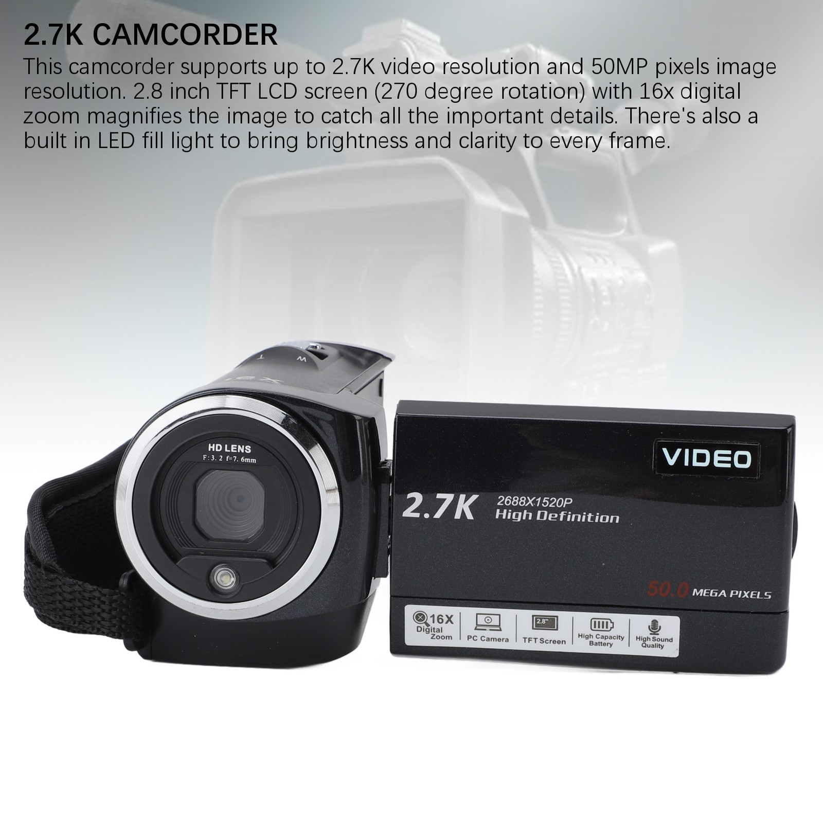 2.7K Camcorder Professional 2.8in Screen HD 50MP 16x Digital Zoom Vlogging C New