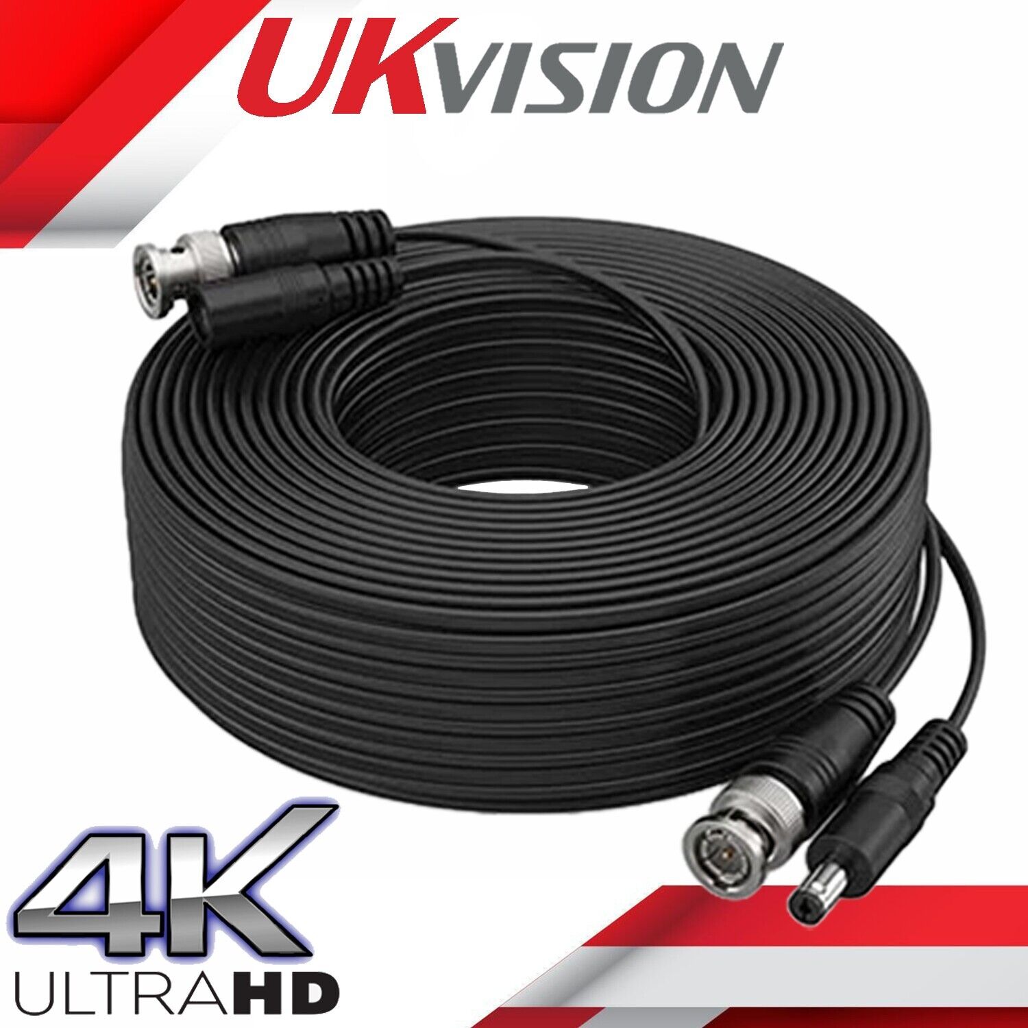 UKvision RG59 BNC 20m Professional Copper Video & DC Power CCTV Cameras Cable