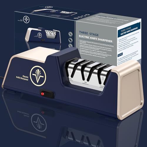 Professional Electric Knife Sharpener with 100% Diamond Abrasives and Precision Angle Guides for Kitchen Straight Edge&Ceramic Knife Work Sharp, 3-Stage Champagne Gold, afilador de cuchillos (2)