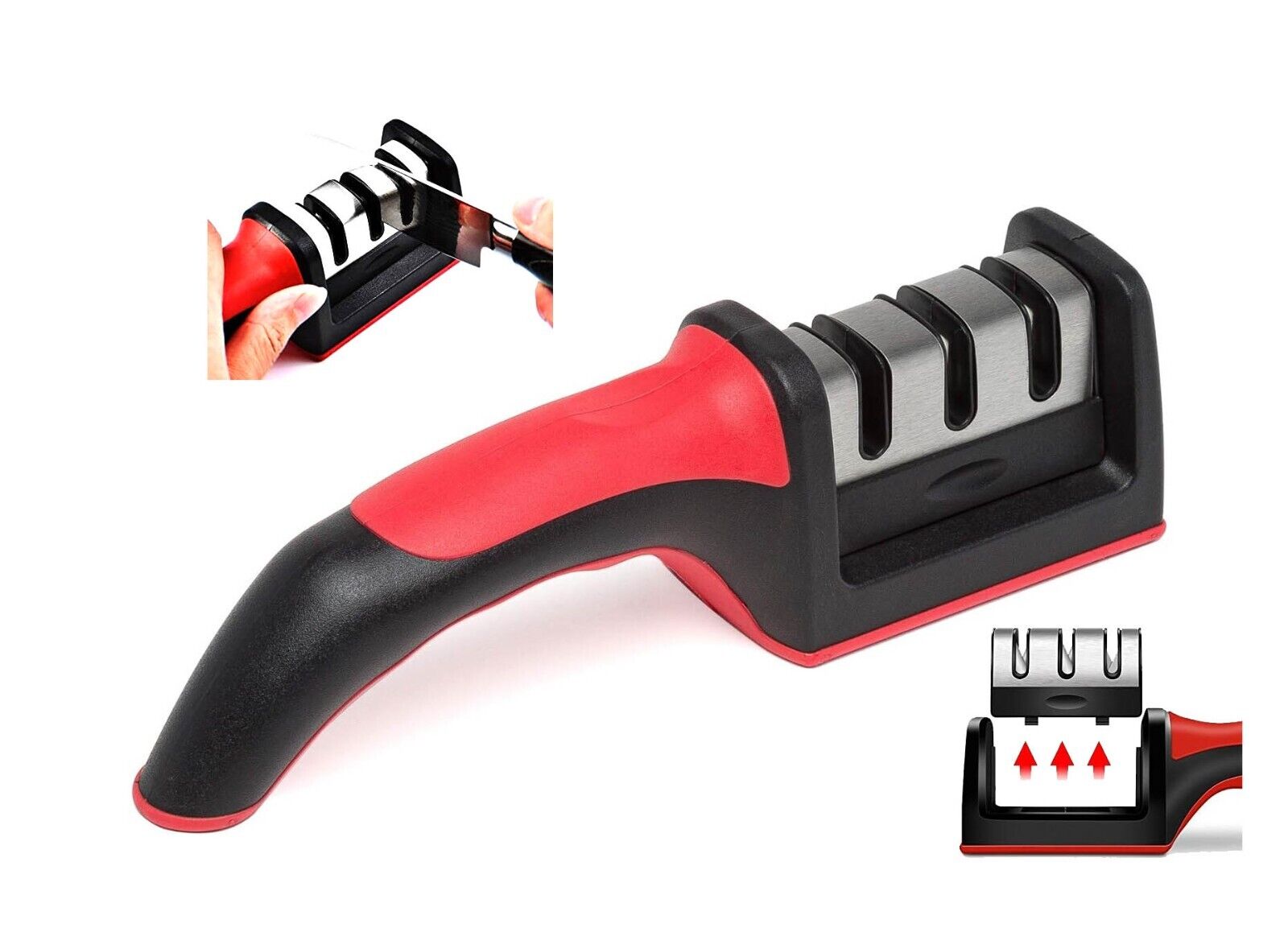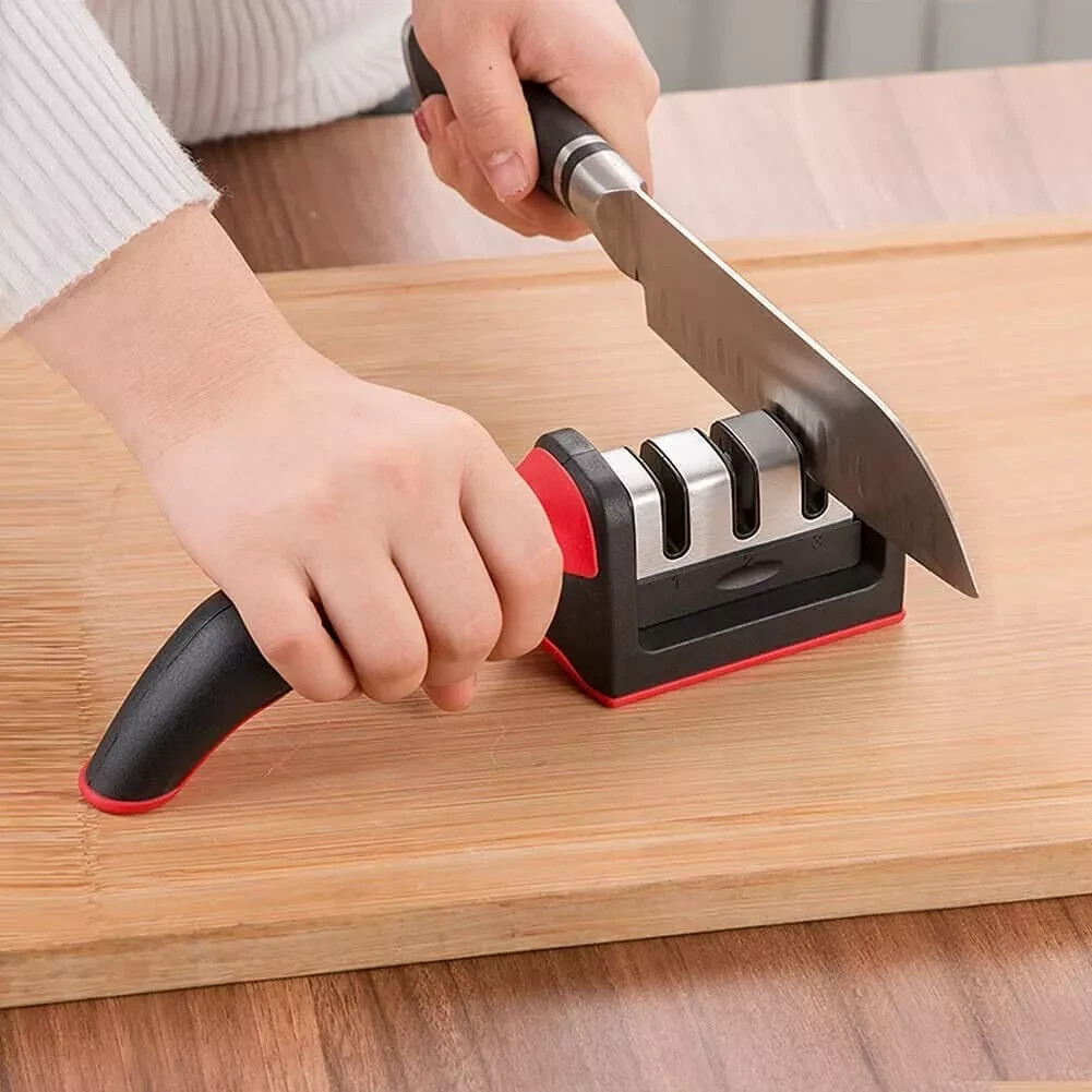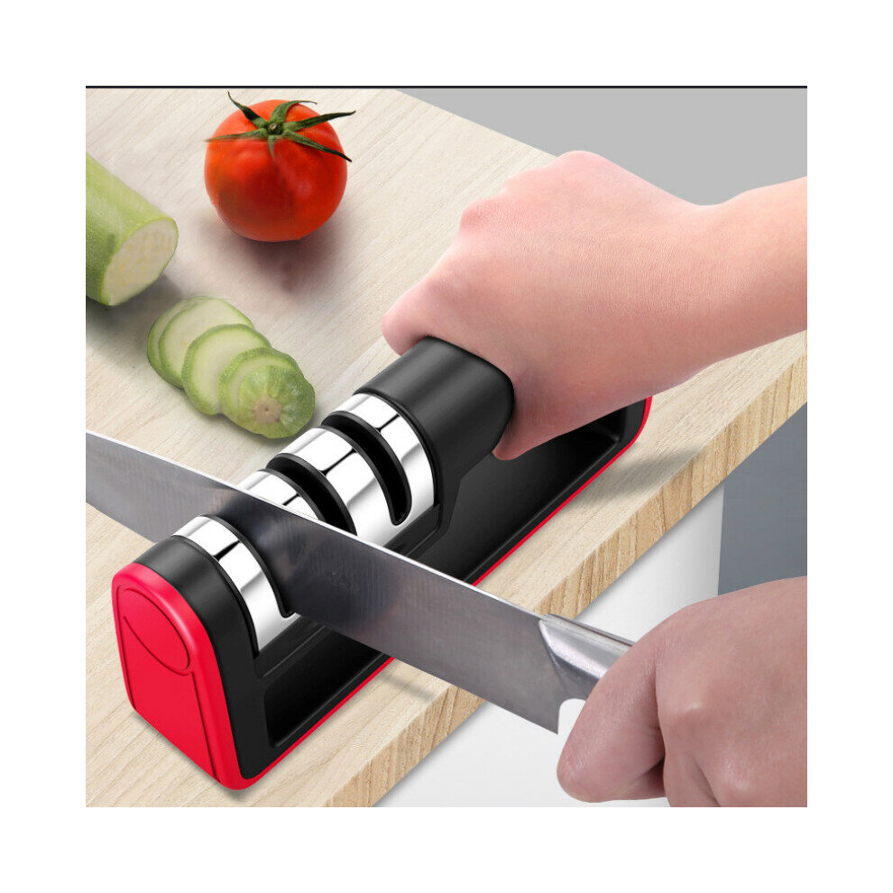 Professional Knife Sharpener 3 Stages Knife Sharpening Kitchen Tool Sharp Red
