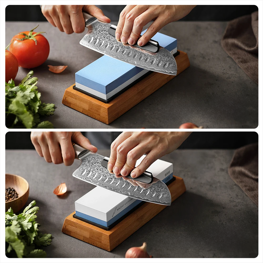 XINZUO Double Side 1000/6000 Grit Whetstone Professional Knife Sharpener Sharpening Stones with Angle Guide &Bamboo Holder