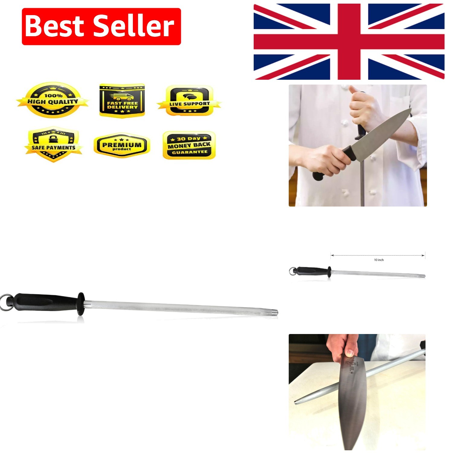 New 10" Professional Knife Sharpener Kitchen Diamond Sharpening Rod UK