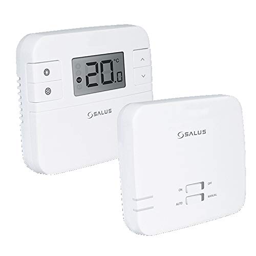 Salus RT310RF Wireless Thermostat - Non Programmable Digital Room Thermostat with RF Receiver, Easy to Install Heating Control for Boiler, Volt Free & 230V, 30m Range