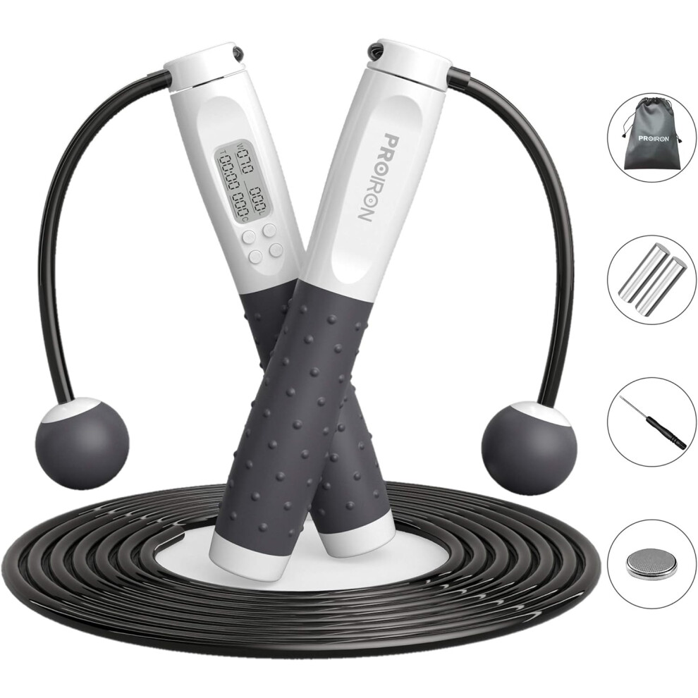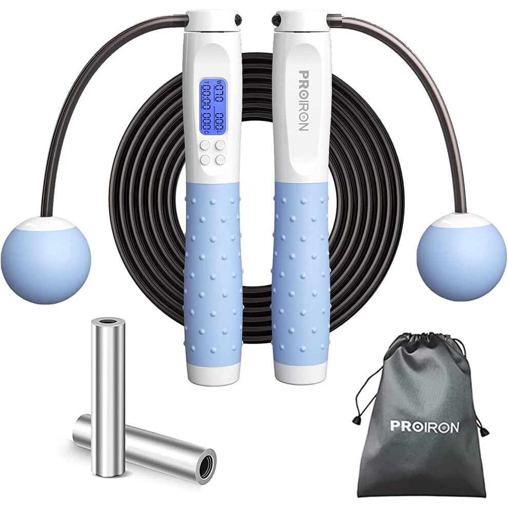 PROIRON Cordless Skipping Rope, Digital Wireless Jump Rope Adjustable Weights/Length Jumping Rope with Calorie Counter,