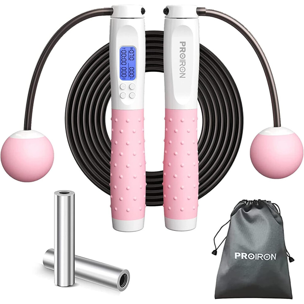 PROIRON Cordless Skipping Rope, Digital Wireless Jump Rope Adjustable Weights/Length Jumping Rope with Calorie Counter, Weighted Jump Rope for Fitness