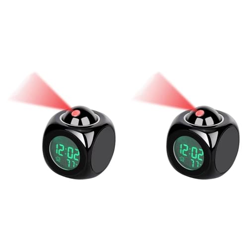 Kueohse 2X Projection Alarm Clock Ceiling Display Snooze Desk Table Clock Voice Multifunction Digital Projection Clock Black