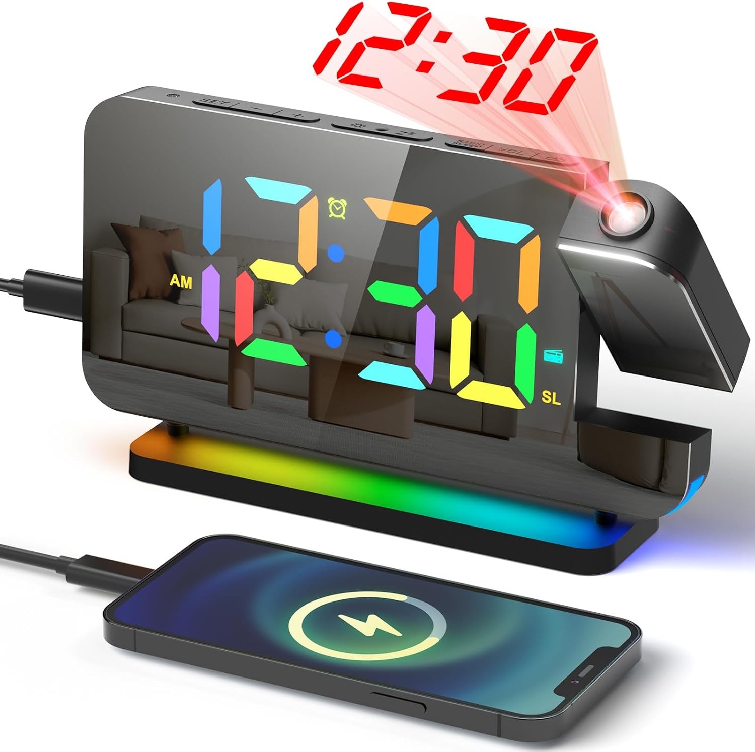 VOSFEEL Projection Clock, Digital Alarm Clocks Bedside, Colourful LED Lights, F