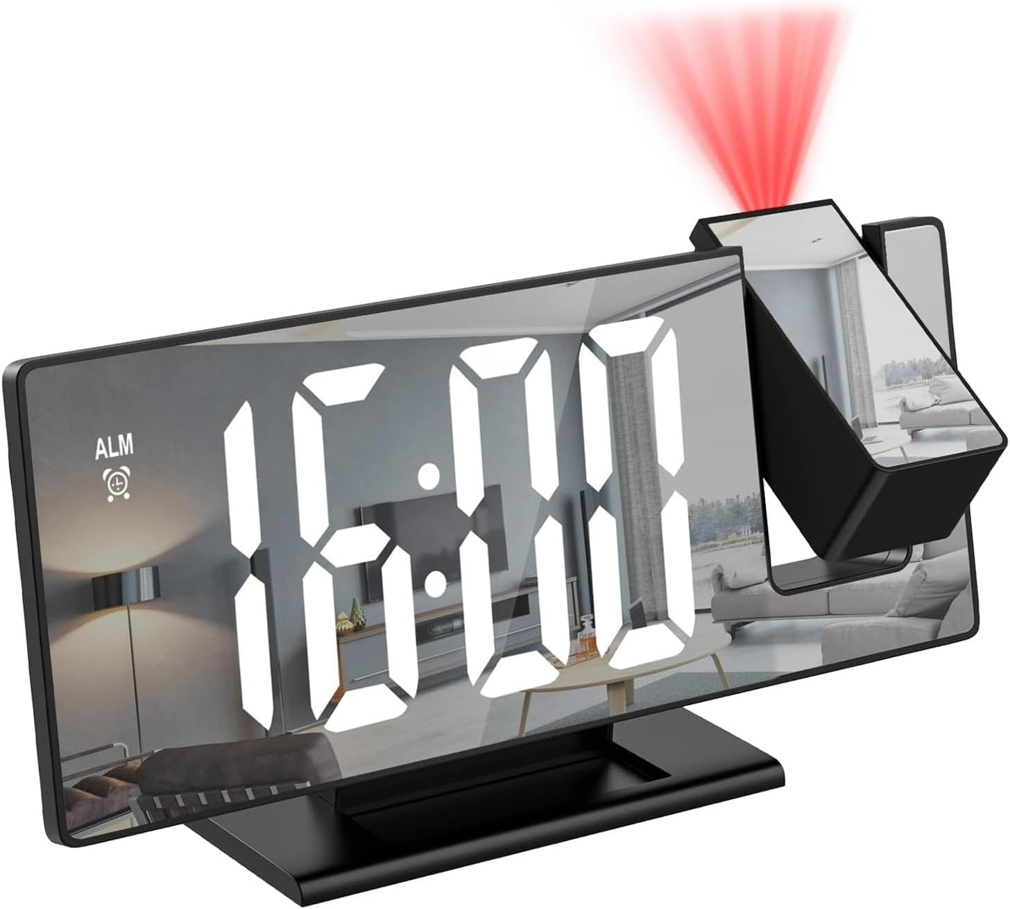 Lichamp Projection Alarm Clocks Bedside,180° Rotatable Projector Mirrorautomat