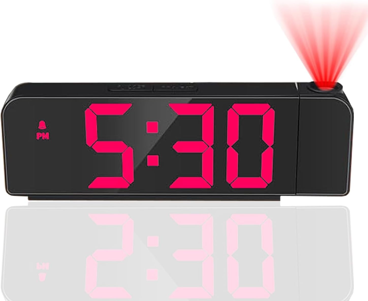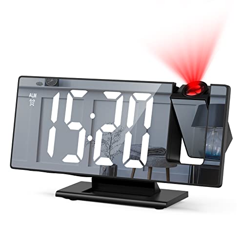 Uxsjakjsd Projection Alarm Clock HD LED Display Smart Projection Clocks for Bedroom 180 Degree Rotatable Digital Clock Projector A