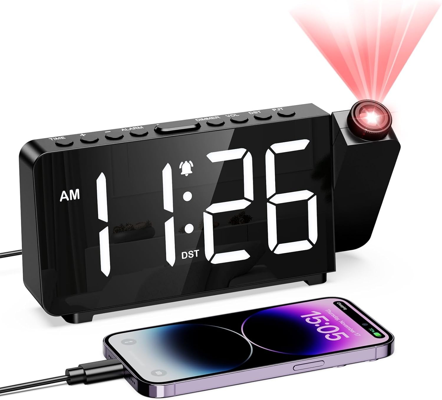 LIORQUE Projection Alarm Clock, Projection Clocks for Bedrooms with FM Radio wi