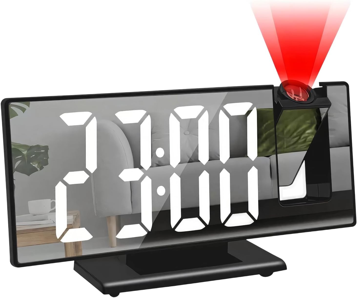 Projection Alarm Clock, Alarm Clocks Bedside With Fm Radio, Digital Clock, Snooze, 7 "LED Mirror Display,Clocks For Bedrooms, Home, Office